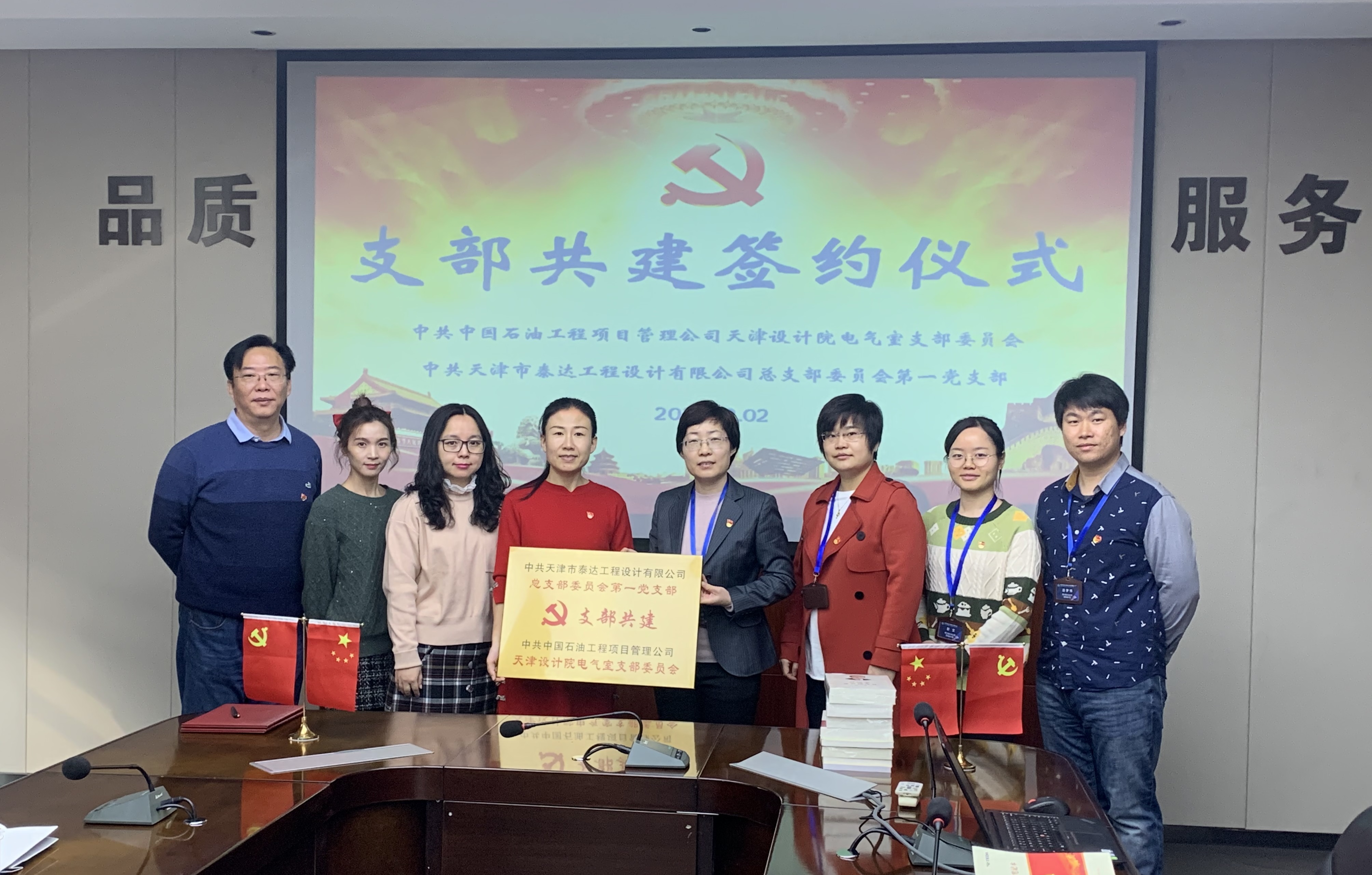 為加強(qiáng)基層黨建引領(lǐng),實(shí)現(xiàn)黨建共建優(yōu)勢(shì)互補(bǔ),2020年12月2日,中共天津市泰達(dá)工程設(shè)計(jì)有限公司總支部委員會(huì)第一黨支部與中共中國(guó)石油工程項(xiàng)目管理公司天津設(shè)計(jì)院電氣室支部舉辦基層黨支部黨建共建簽約、授牌儀式。儀式上,雙方就共建原則和目標(biāo)、共建內(nèi)容、實(shí)施步驟、工作要求等方面進(jìn)行了深入交流,共同簽署了黨建共建合作協(xié)議。此次共建結(jié)對(duì)以“資源共享,優(yōu)勢(shì)互補(bǔ),文明共建、互利共贏”為抓手,有效整合中共天津市泰達(dá)工程設(shè)計(jì)有限公司總支部委員會(huì)第一黨支部及中共中國(guó)石油工程項(xiàng)目管理公司天津設(shè)計(jì)院電氣室支部的黨建工作和優(yōu)勢(shì)資源,積極發(fā)揮雙方優(yōu)勢(shì),提升各支部黨建工作水平,共同開創(chuàng)黨建工作新局面。