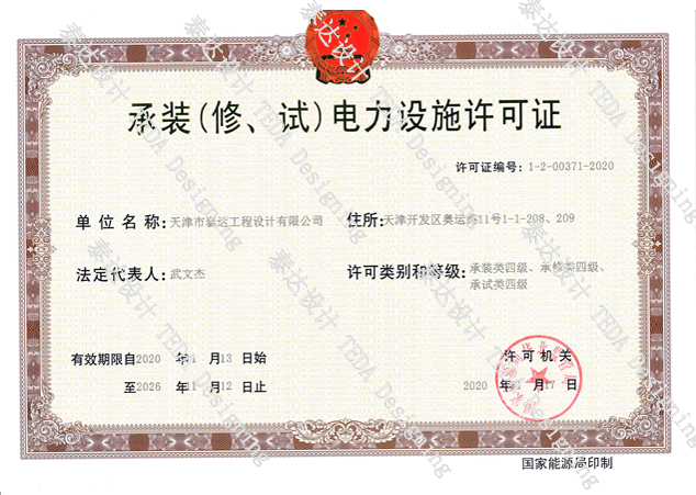 公司申報的承裝(修、試)電力設施資質于2020年11月17日得到國家能源局華北監管局的批準,并頒發許可證。