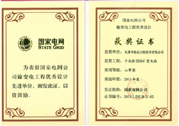 “國網(wǎng)評優(yōu)”是國家電網(wǎng)公司為了加強設計管理,推動設計理念和方法創(chuàng)新、提高工程設計質(zhì)量,根據(jù)《國家電網(wǎng)公司輸變電工程優(yōu)秀設計評選管理辦法》,組織開展的年度優(yōu)秀設計評選工作。本年度的評選工作得到了各網(wǎng)省院的積極參與,共有240項工程參加優(yōu)秀設計評選,根據(jù)評分結果和專家意見,最終共授予100項工程優(yōu)秀設計獎,其中,一等獎17項,二等獎33項,三等獎50項。我公司完成的“千米橋220kV變電站”設計,在國網(wǎng)天津市電力公司的大力推薦下,通過評選榮獲了本年度二等獎。